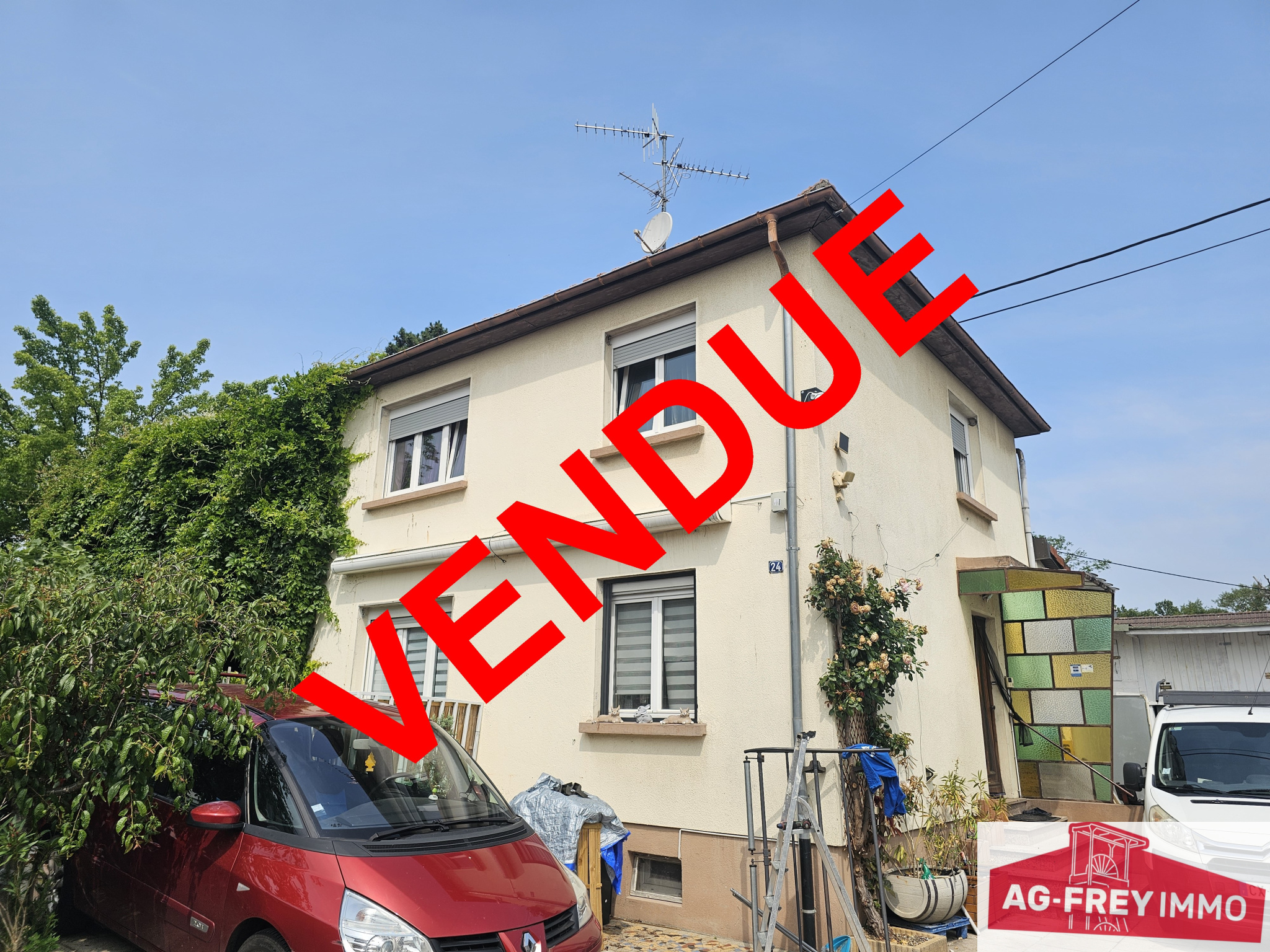Maison jumelée d'un côté d'environ. 85m2 sur 2,94 ares de terrain, datant des années 50, composée comme suit :