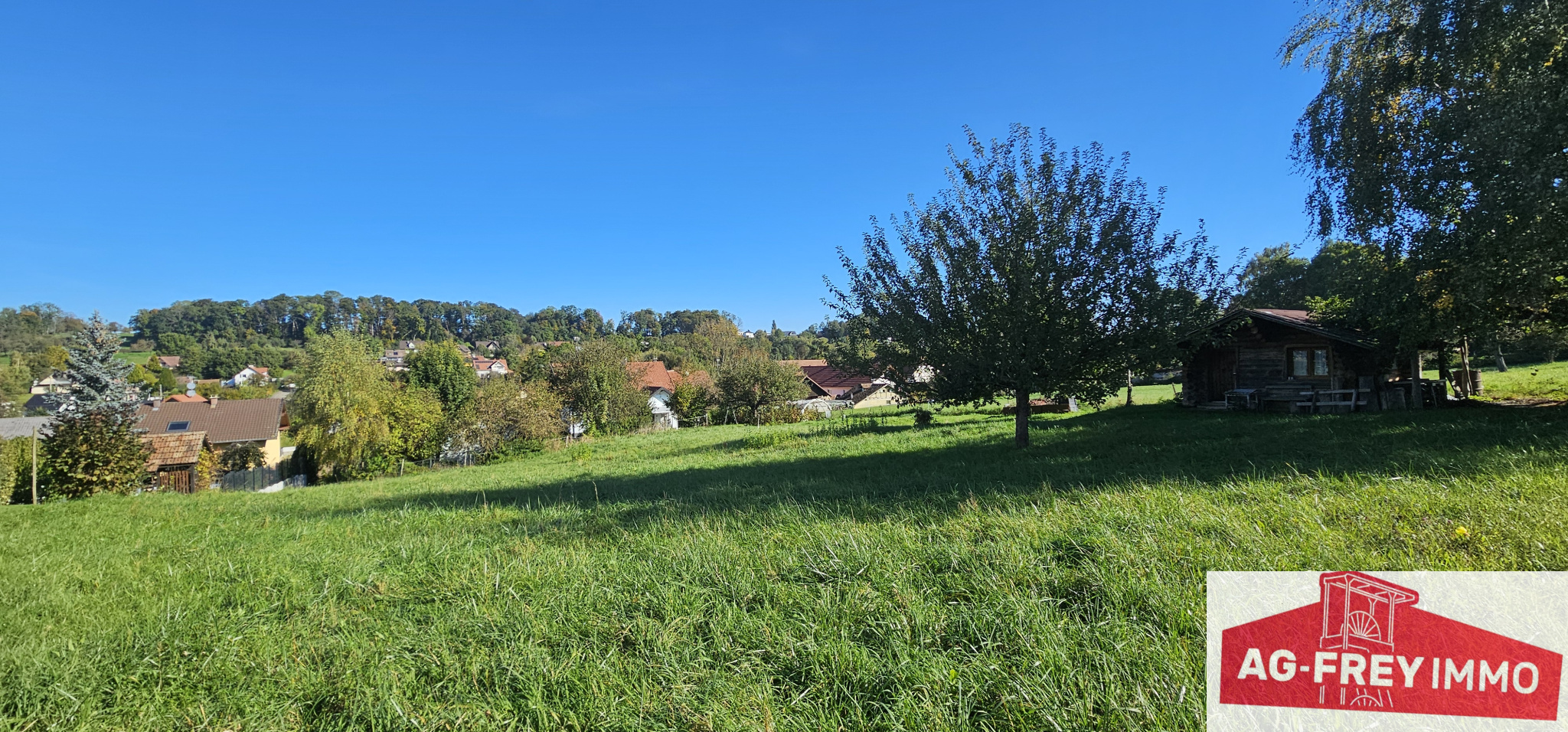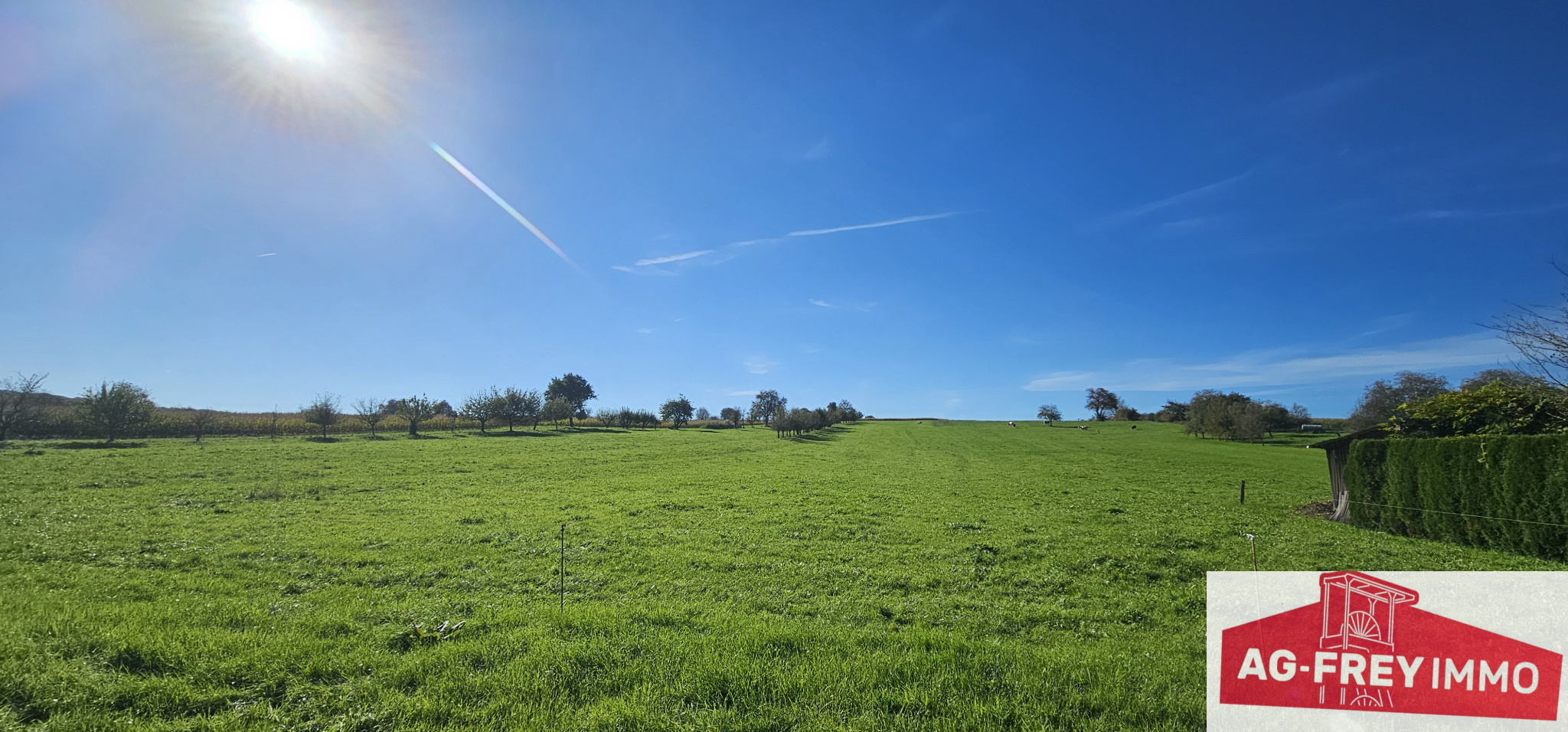 A l'extérieur : grand terrain constructible avec vue dégagée sur les champs et une dépendance.