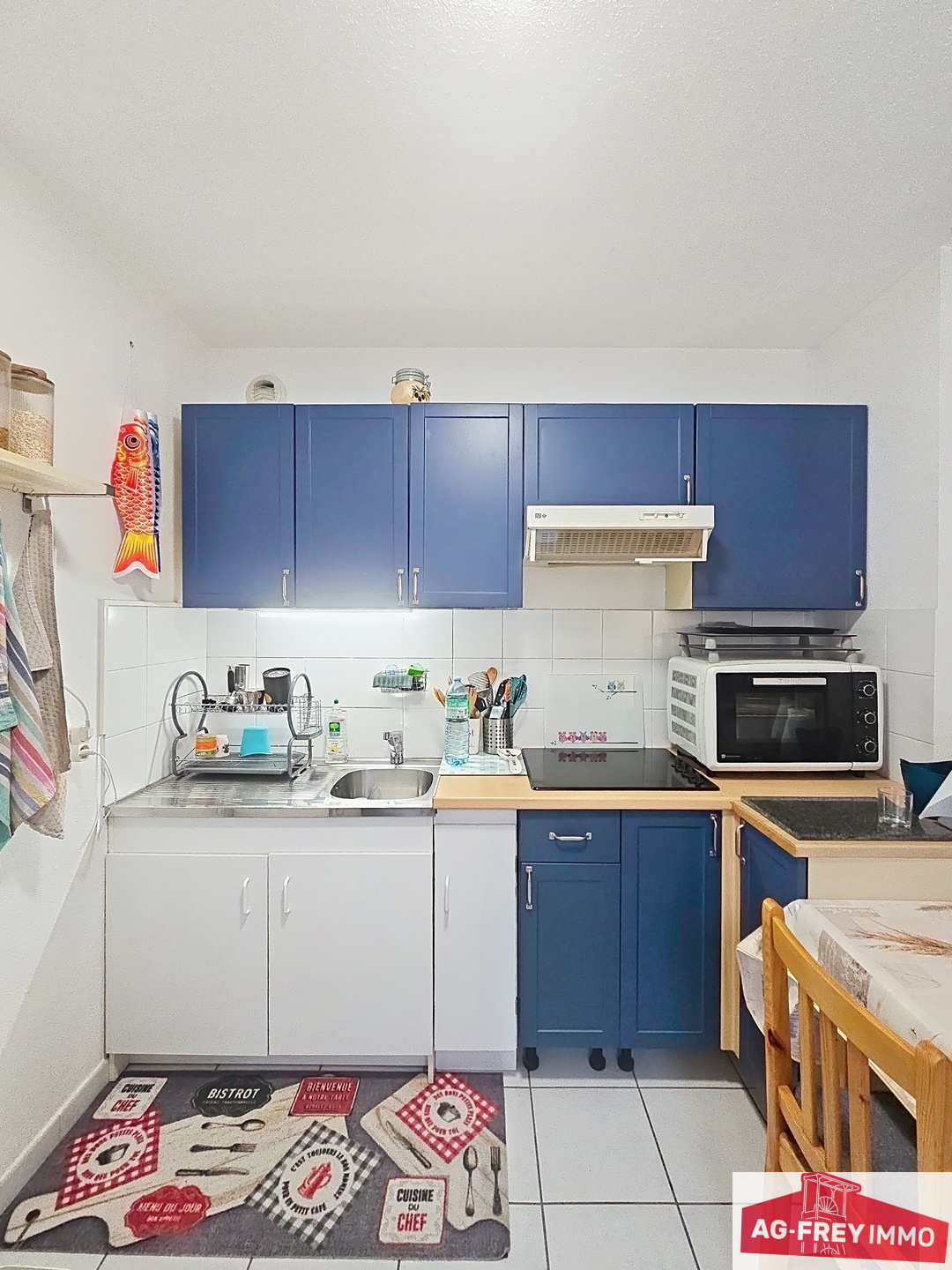 Sympathique appartement type F2 de 43,60 m2 au 1er étage (sans asc), composé d'une chambre, cuisine équipée, salle de bains et wc